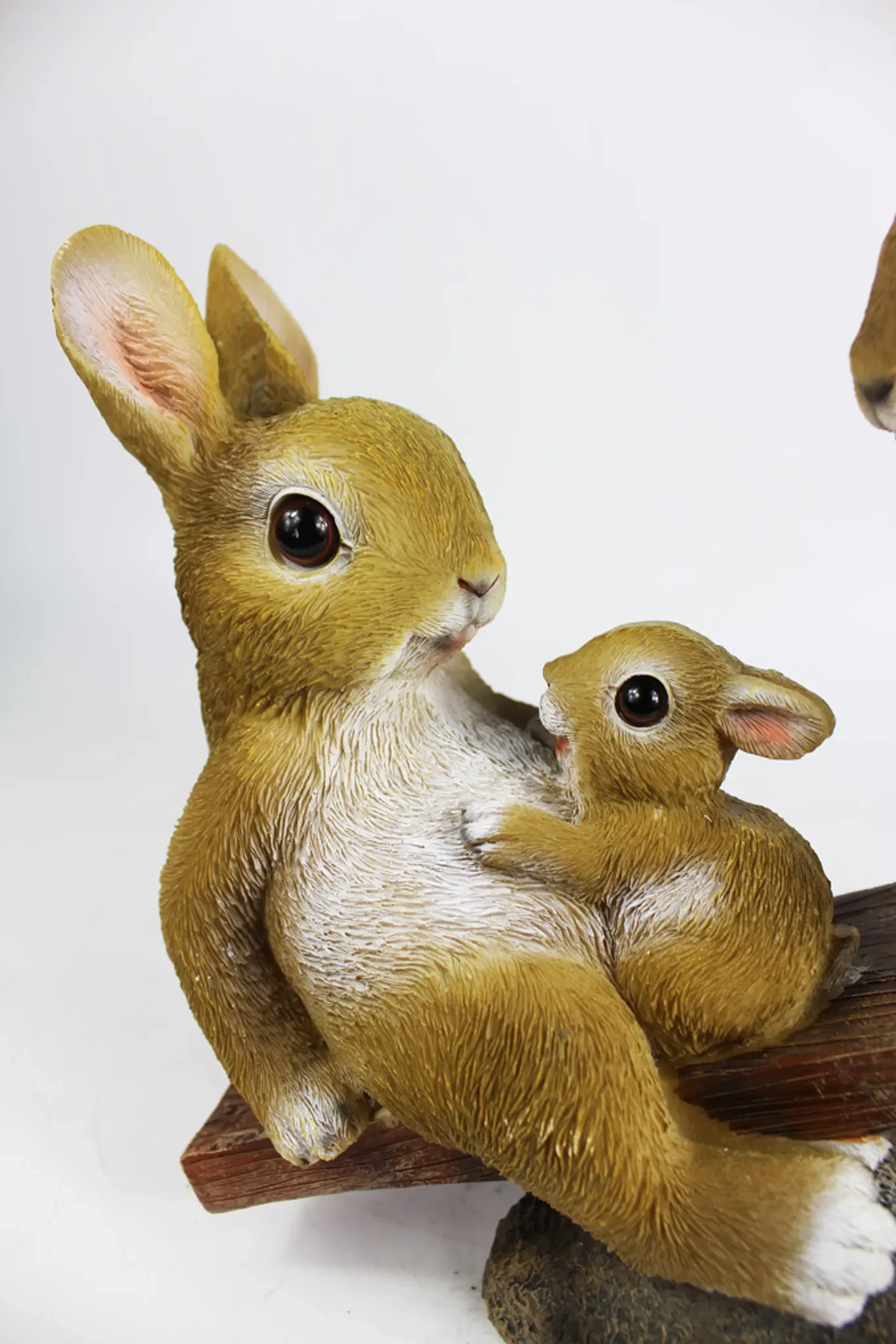 Produktinformationen "Dekofigur Hasenfamilie auf Wippe – Gartenfigur aus Polyresin"