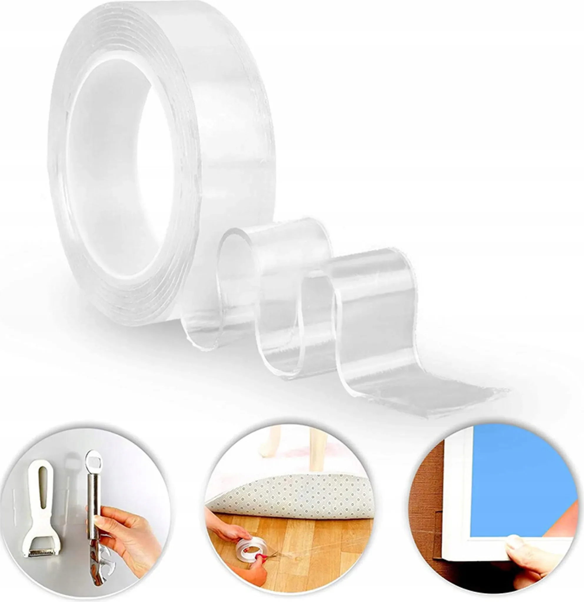 Das Band ist wiederverwendbar: Wird es schmutzig, kann es einfach mit Wasser gewaschen und nach dem Trocknen erneut eingesetzt werden. Es hinterlässt keine Kleberückstände und schont Oberflächen – ideal für Bilder, Küchenutensilien, Kabel, Dekorationen oder Teppiche.