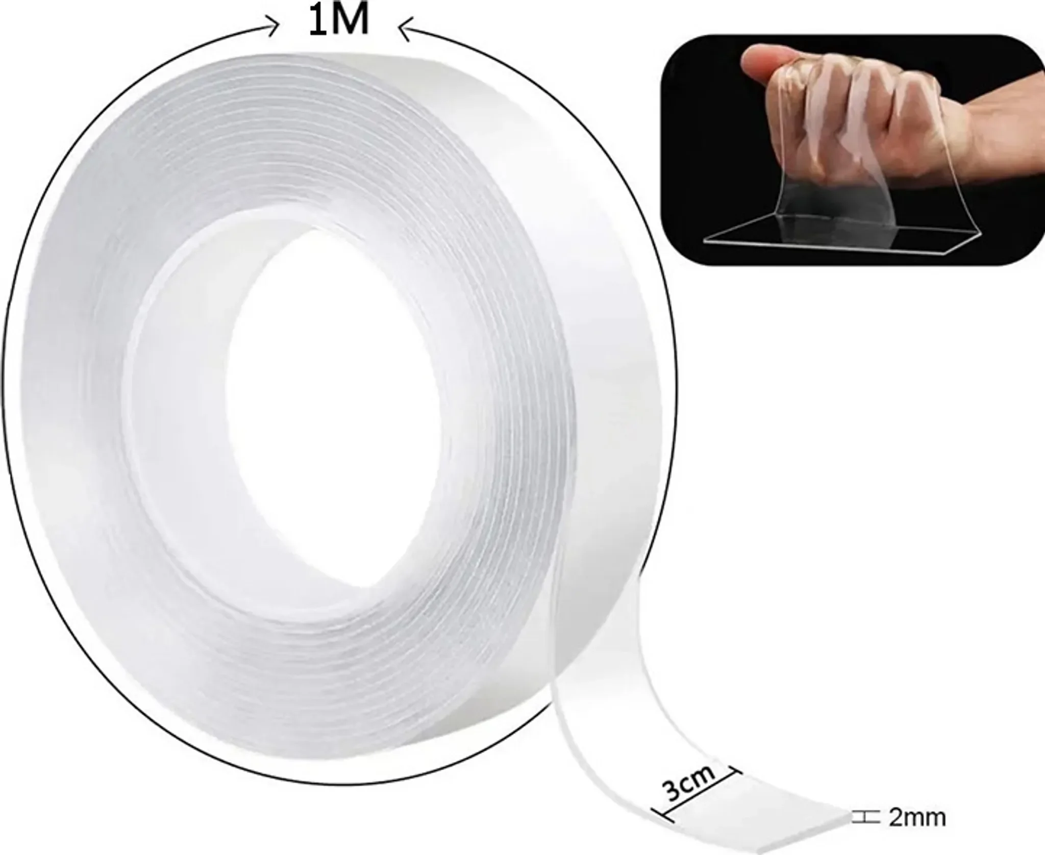 Doppelseitiges Nano-Klebeband – Transparent, 1 m