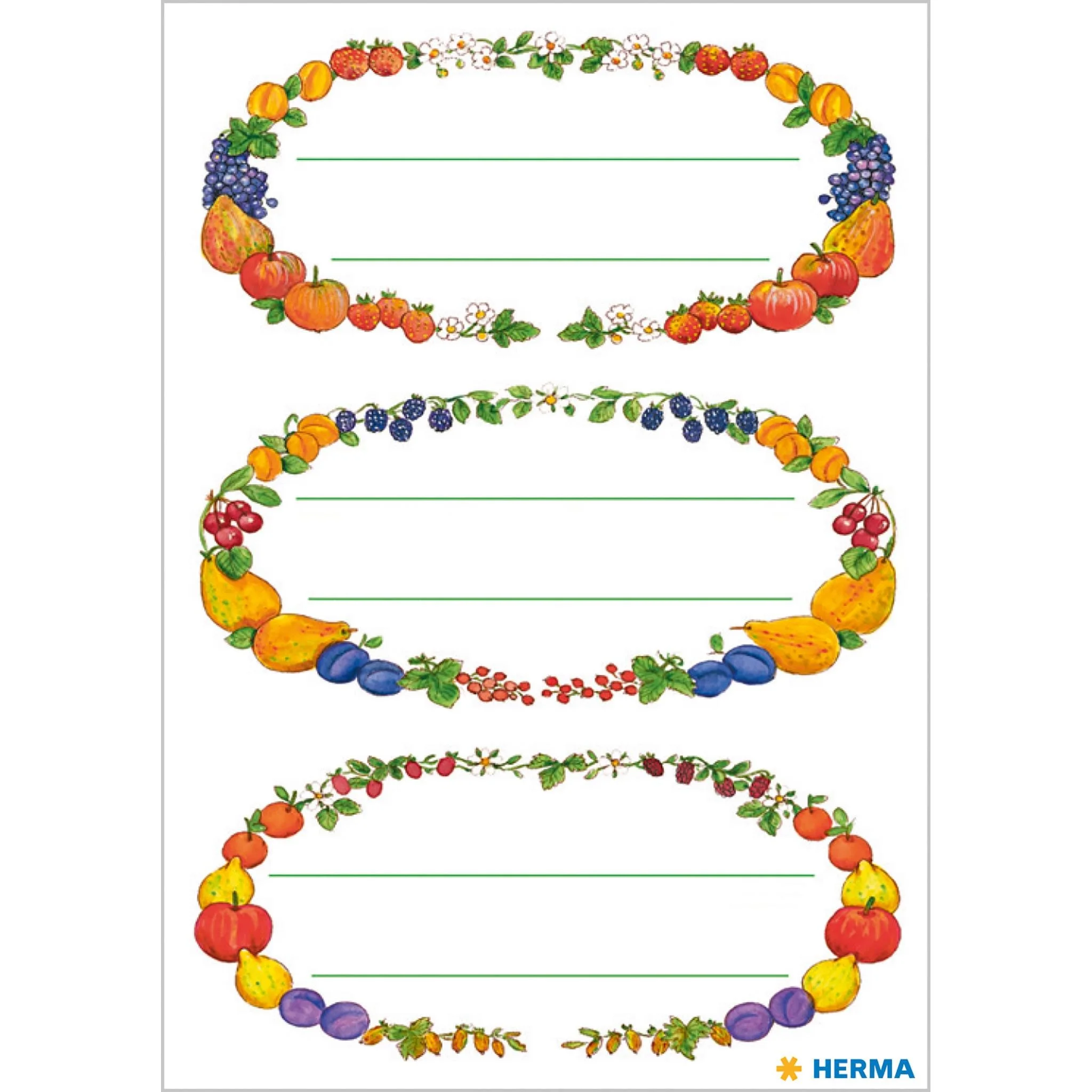 Etikettenpapier 76 × 35 mm – Küchenetiketten „Früchtekränze“