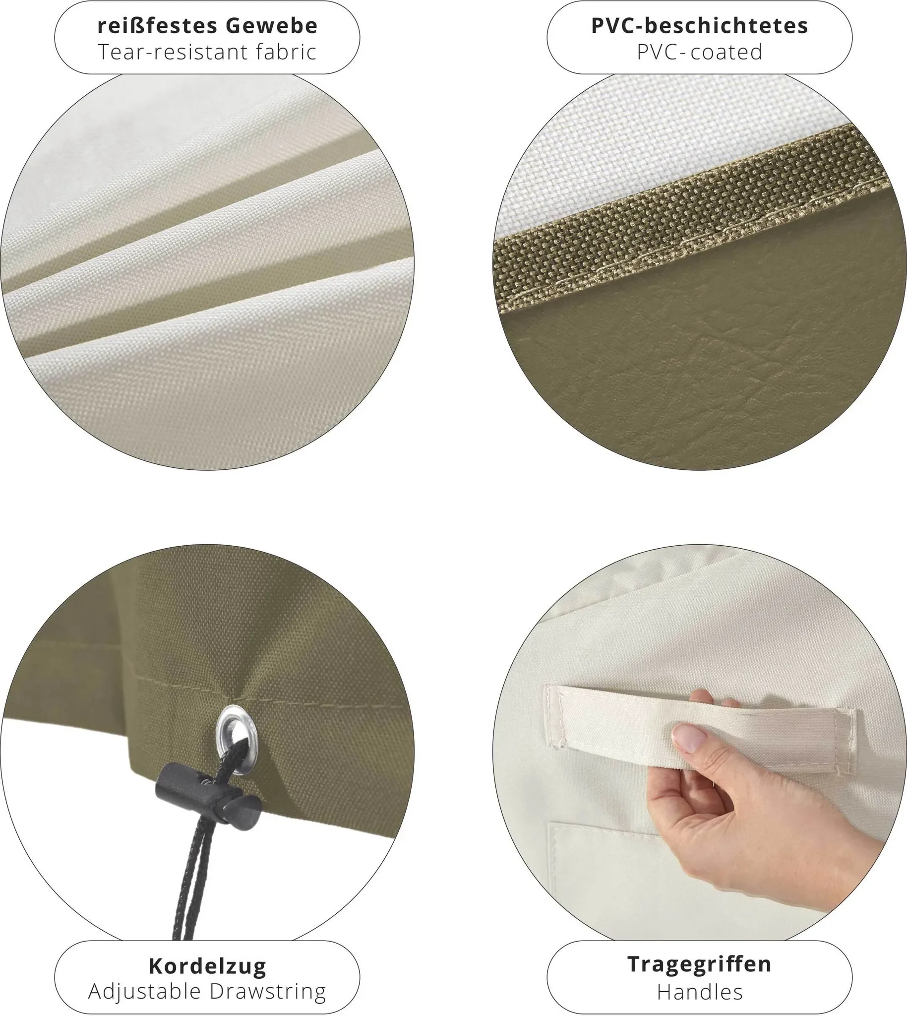 Highlights: Reißfestes Oxford-600D-Gewebe, zuverlässiger Wetterschutz zu jeder Jahreszeit, integrierte Tragegriffe für einfaches Handling, schnell zu reinigen und langlebig verarbeitet.