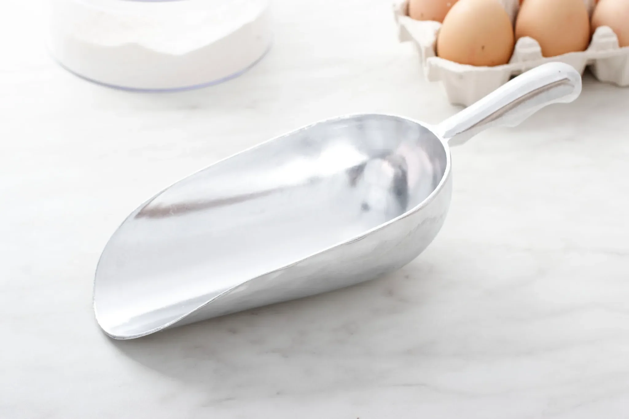 Diese praktische Küchenschaufel aus Edelstahl eignet sich ideal zum Portionieren und Abfüllen von Mehl, Zucker, Gewürzen oder anderen trockenen Lebensmitteln. Durch ihre stabile Ausführung ist sie ein zuverlässiger Helfer in Küche, Vorratsraum oder beim Backen.