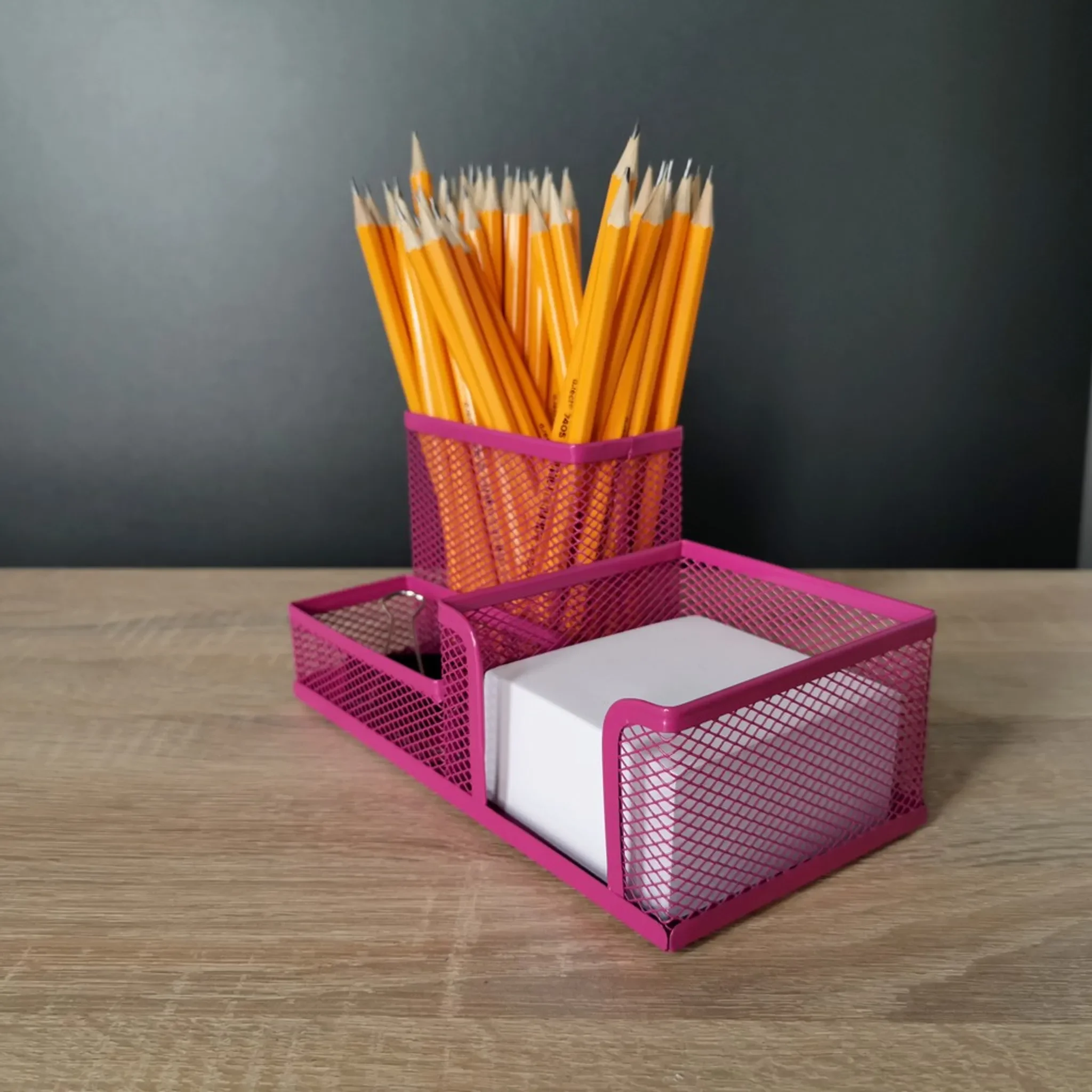Der Leviatan Metall-Organizer in kräftigem Pink ist die perfekte Kombination aus Funktionalität und modernem Design. Er bringt Farbe auf Ihren Schreibtisch und sorgt gleichzeitig für Ordnung im Büro oder Homeoffice.