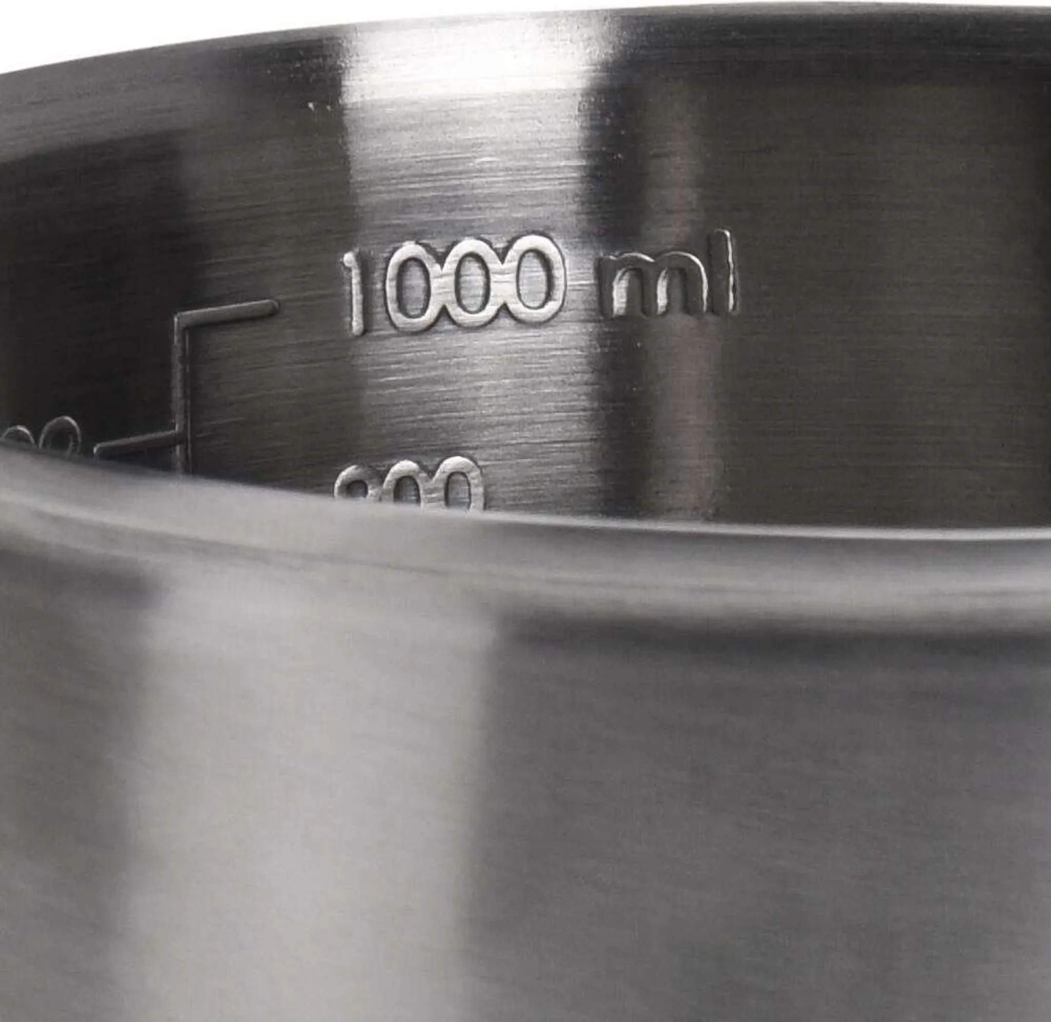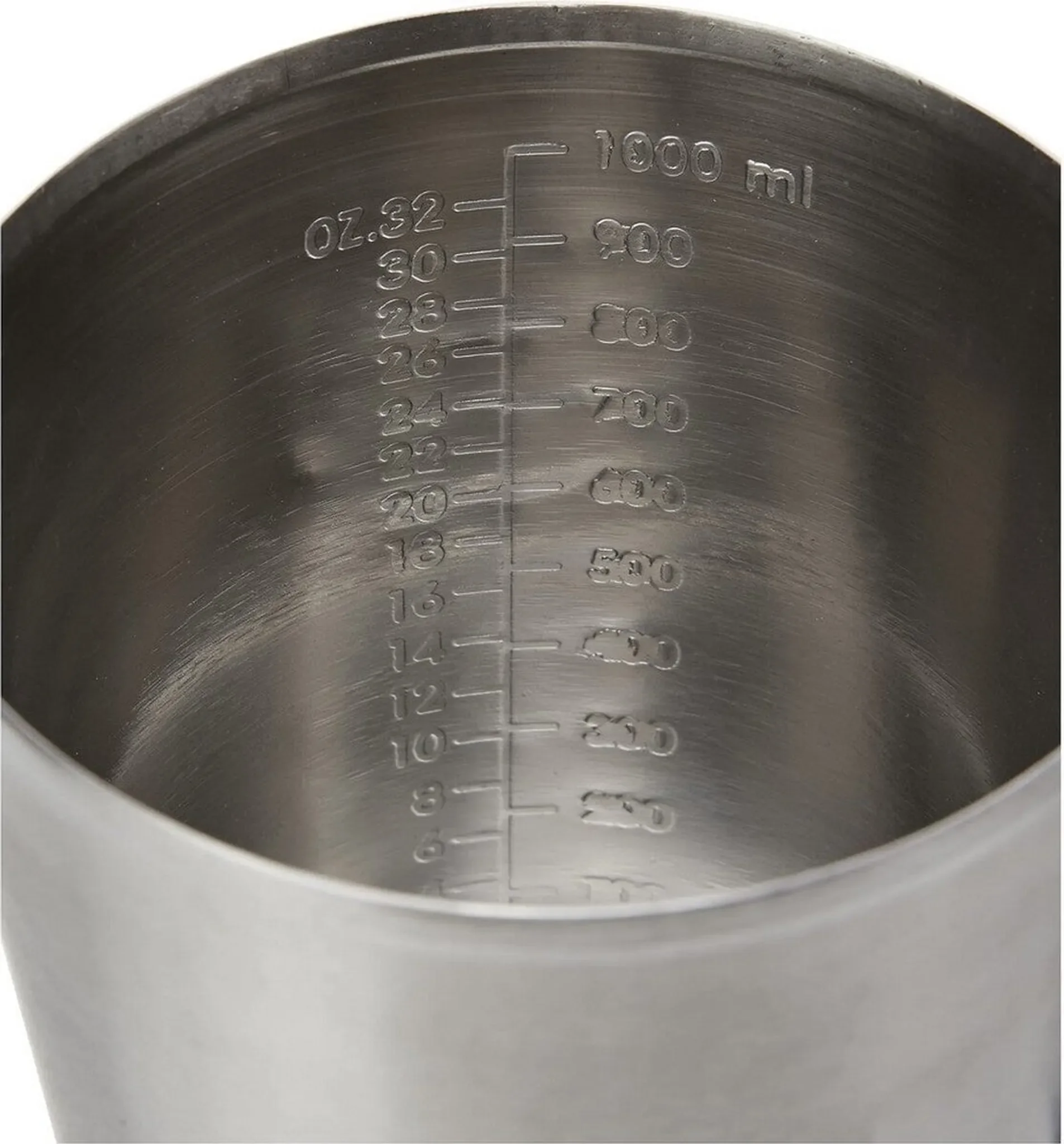 Die gut lesbare Skala auf der Innenseite ermöglicht exakte Messungen bis zu 1 Liter. Dank des ergonomischen Griffs und des breiten Ausgusses lässt sich der Inhalt sicher und sauber umfüllen. Die glatte Edelstahloberfläche ist geschmacksneutral, nimmt keine Gerüche auf und ist besonders pflegeleicht.