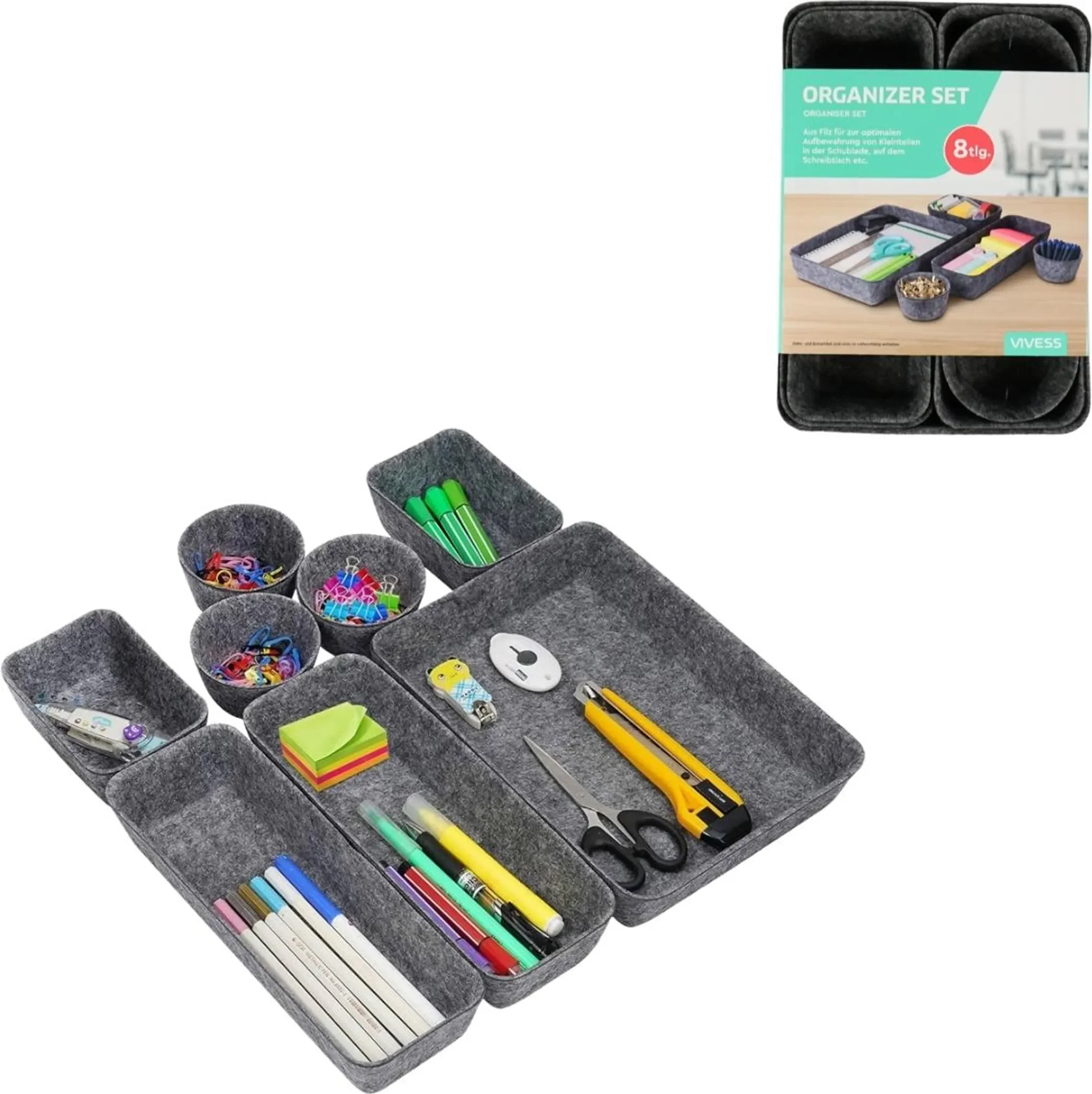 Produktinformationen "Schubladen-Organizer ZEMBOR – Set aus 8 Stk., Grau"