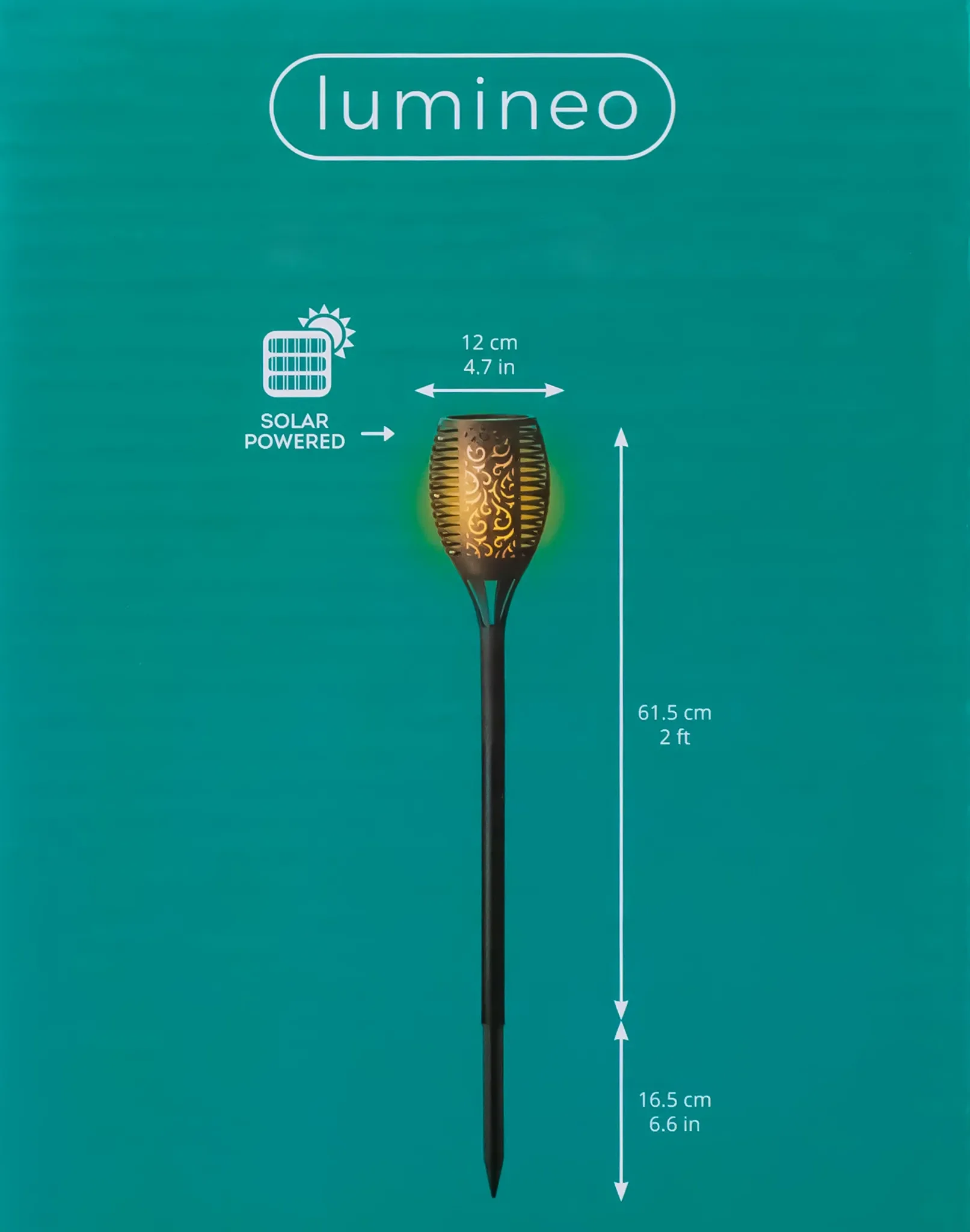 Solar Gartenpfahl mit Flammeneffekt – LED Gartenfackel, Schwarz