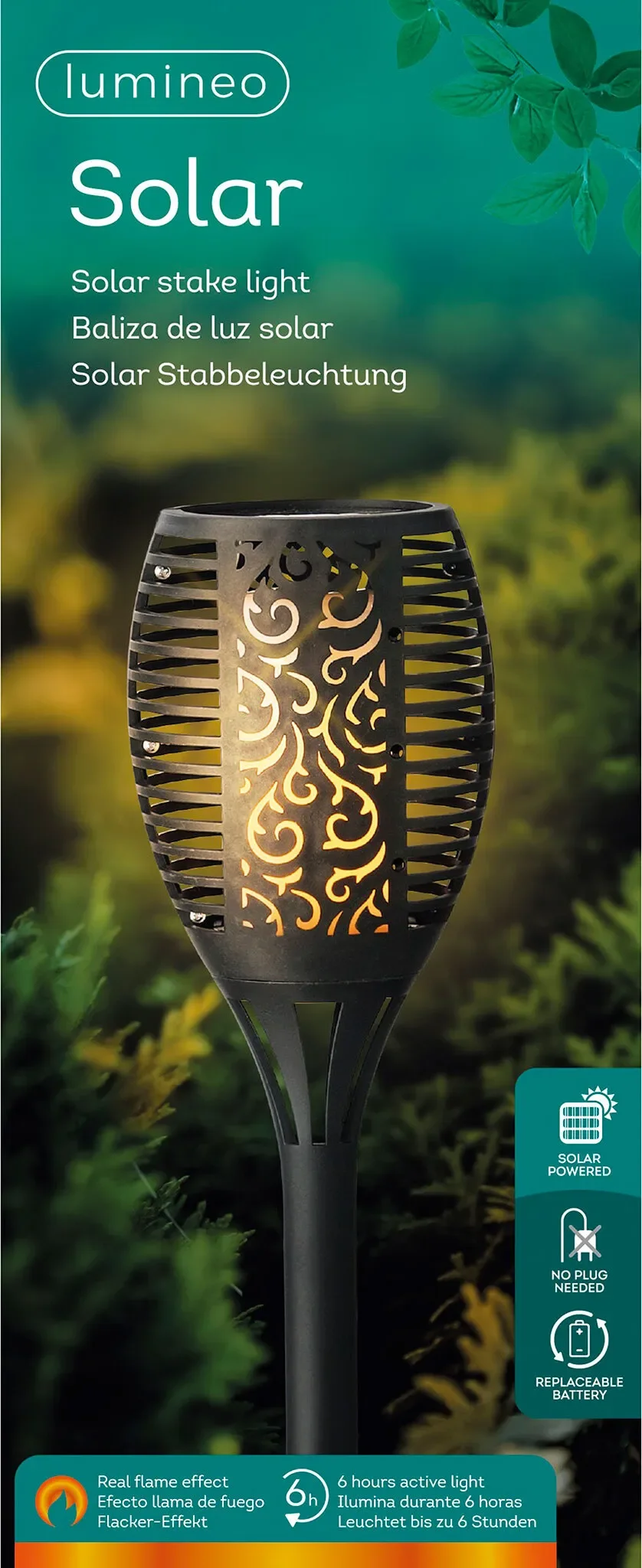Highlights: Atmosphärischer Flammeneffekt, energieeffiziente LED-Technik, Solarbetrieb mit automatischer Einschaltung, flexibel steckbar, wetterfest für den Außenbereich.