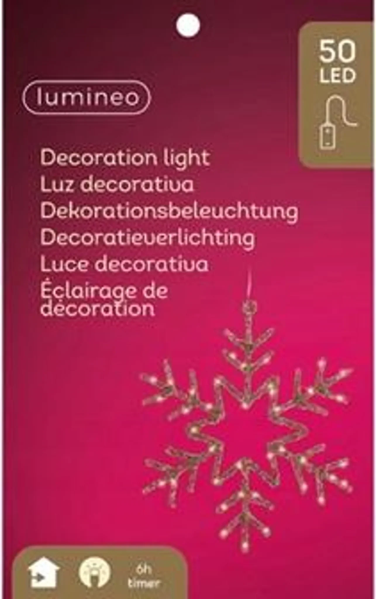 Highlights: Elegantes Schneeflocken-Design, warmweißes LED-Licht, energieeffiziente 50 LEDs, batteriebetrieben für flexible Montage, geeignet für Innen- und Außenbereiche.